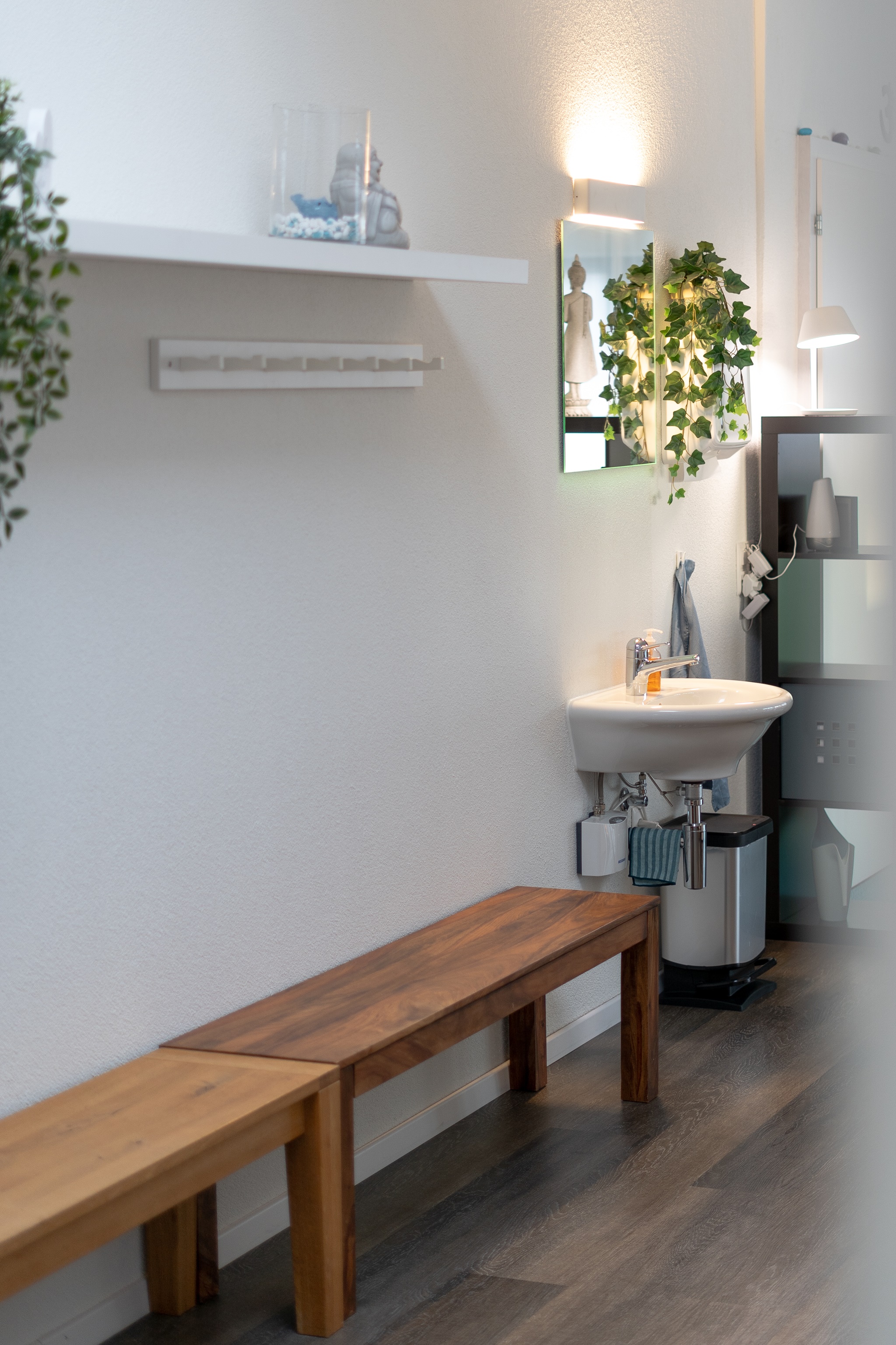 Garderobe, WC und Dusche vorhanden. Parkplätze vor dem Studio.